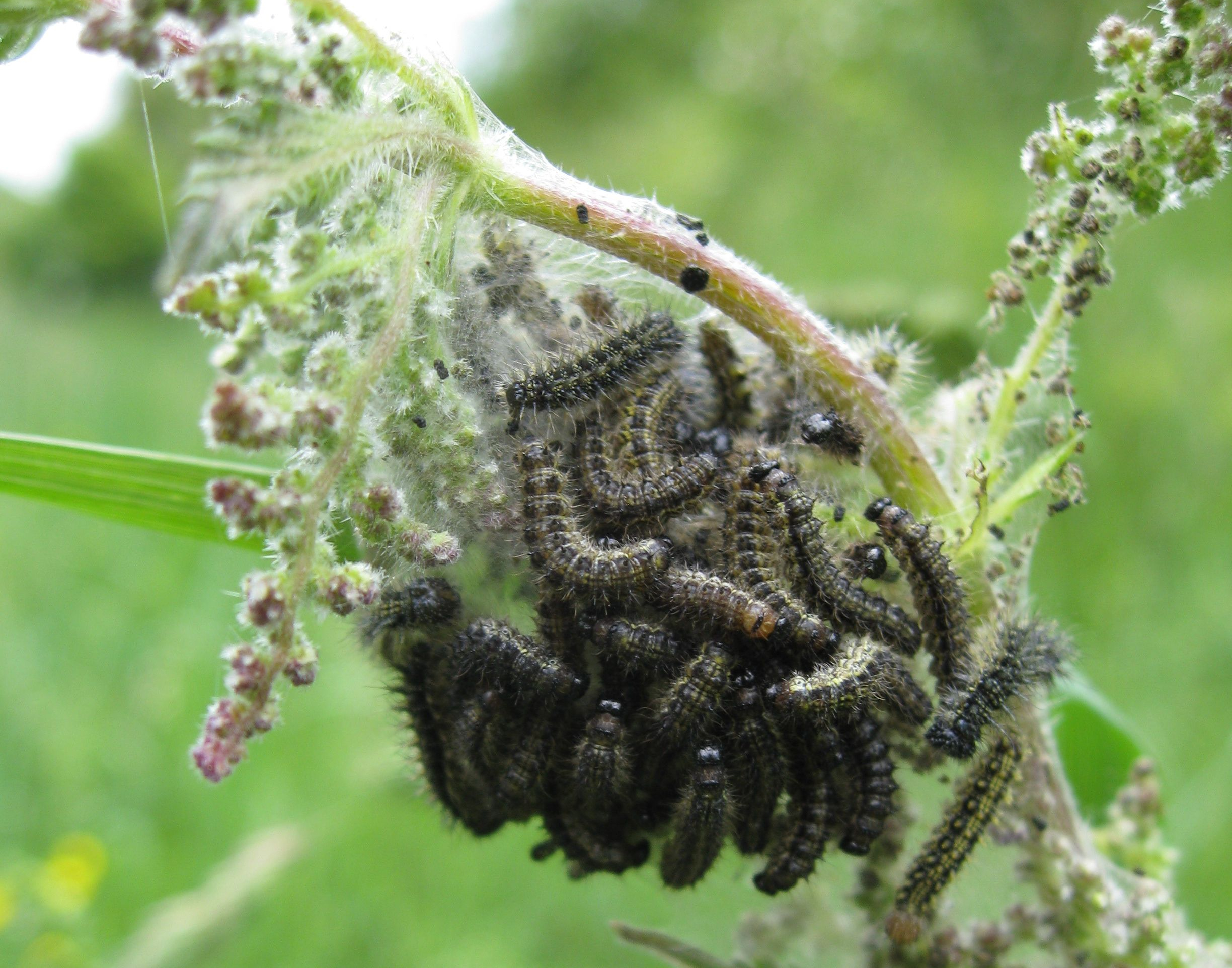 The peacock is one of the longest-lived species in the UK and they overwinter as adults, often congregating together in sheltered locations such as sheds and tree hollows. The species is found all over the UK and Ireland throughout most of the year, usually emerging from winter slumber from March onwards, but it can be seen earlier if a warm spell occurs. Its beautiful black, spiny caterpillars live in groups and can be found feeding on sunny nettle patches throughout June.
