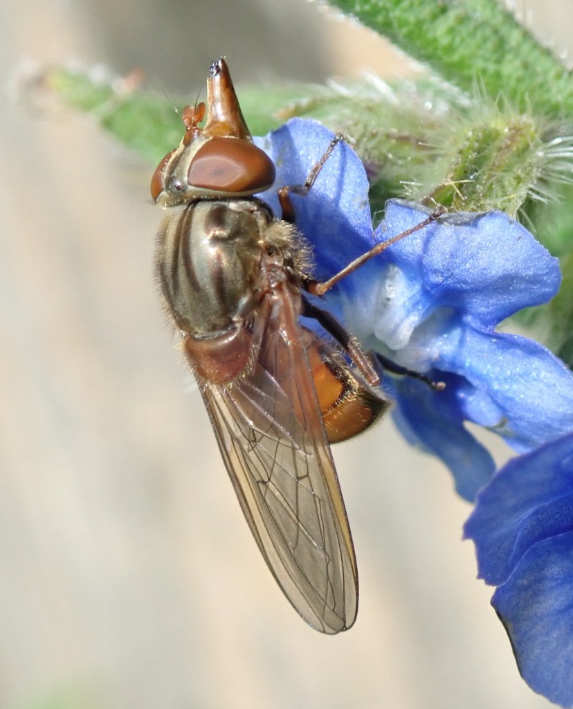 Although strange-looking, with a prominent rostrum in the middle of its face, this is, nonetheless, a hoverfly called Rhingia campestris. In a quiet brown way, this is one of my favourites. The larvae feed on dung.