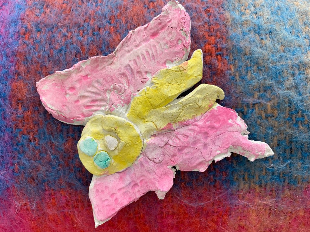 - Cut round your butterfly and you’re finished. You could also add some thread or strips of paper for antennae on its head.