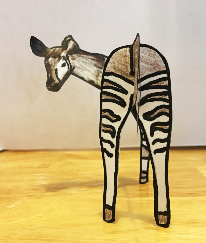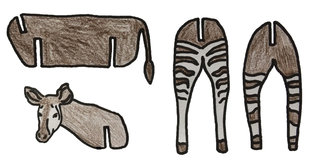- Your okapi will be 3-dimensional, so be sure to colour in the back of each piece.