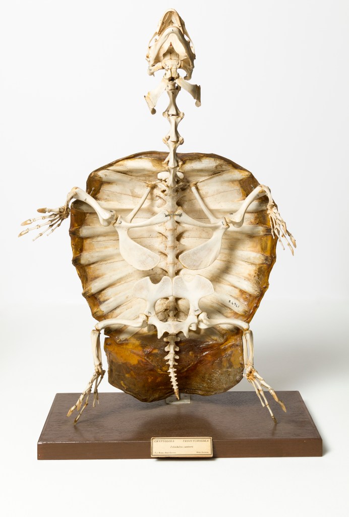 Move your shoulders around – can you feel your shoulder blades in your back? They are outside your rib cage. Take a look at our turtle skeletons and you can see that their shoulders are inside their ribcages – imagine that!