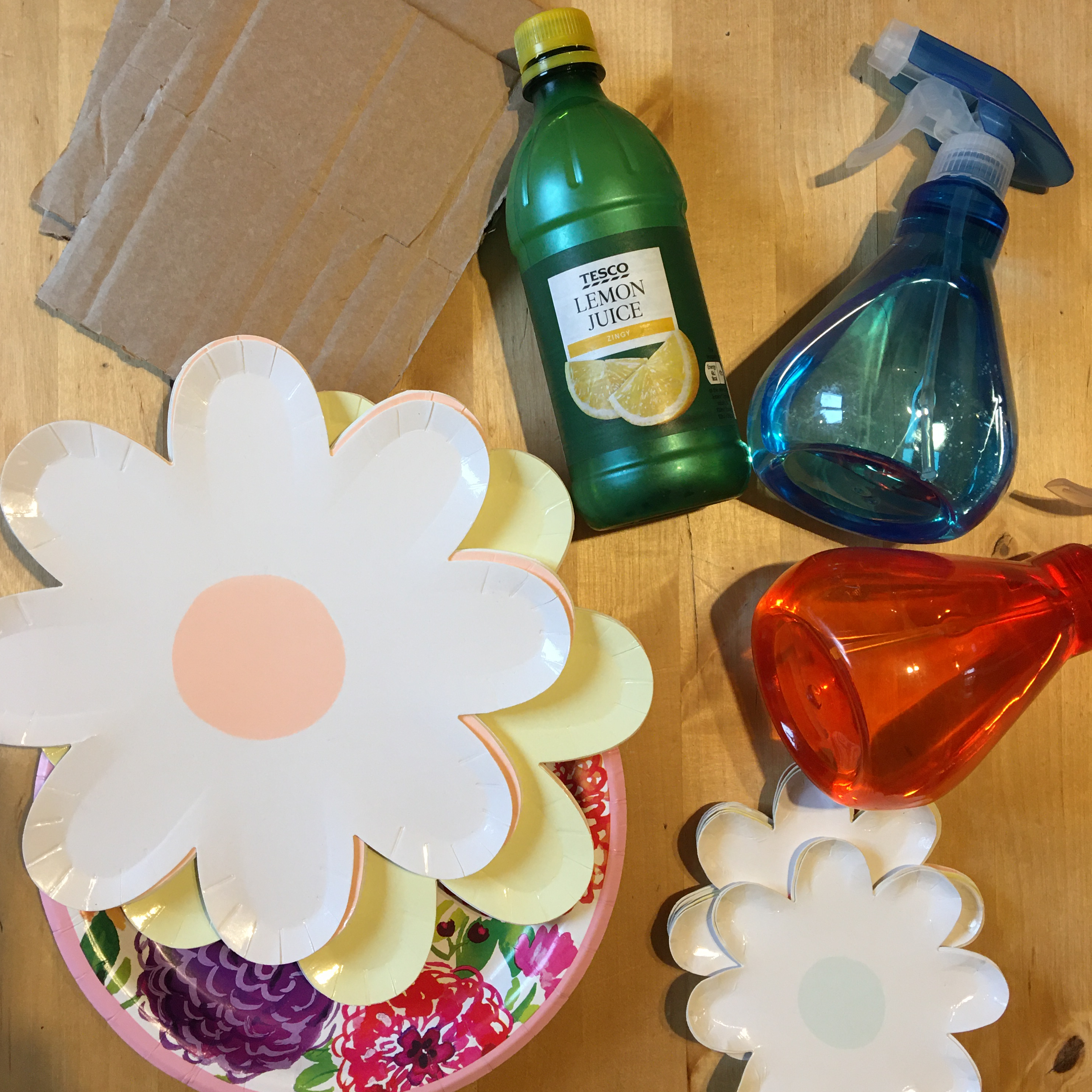 - Cardboard flowers: 5 or more paper plates or cardboard pieces