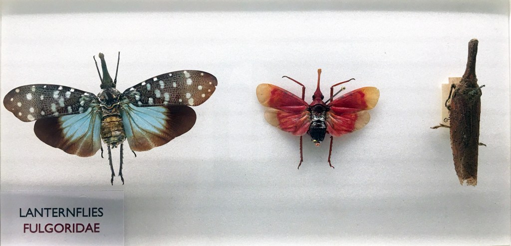 Others, like these Fulgoridae from Asia have long, thin ‘lanterns’ and have bold colours and patterns.