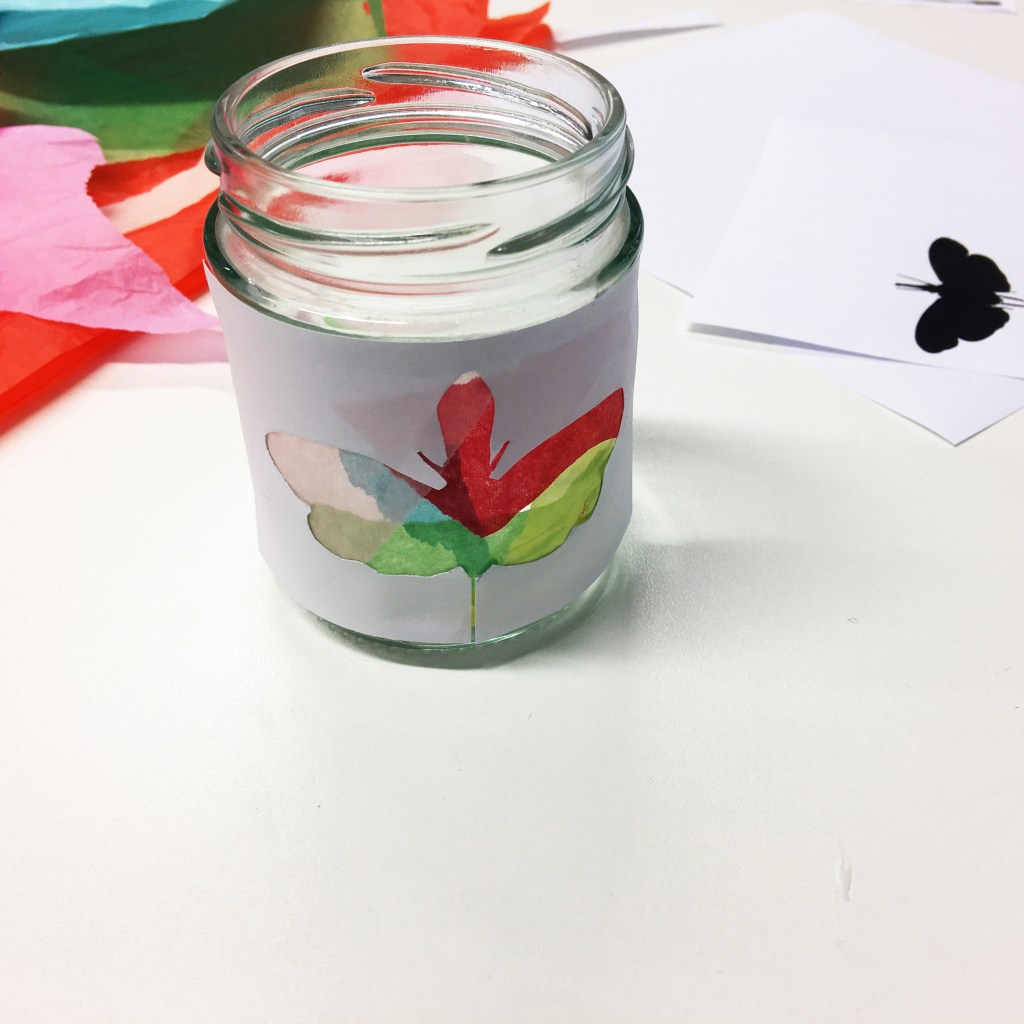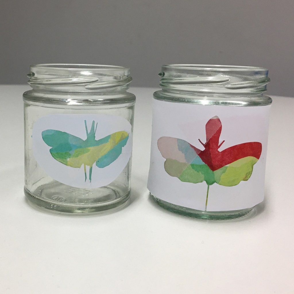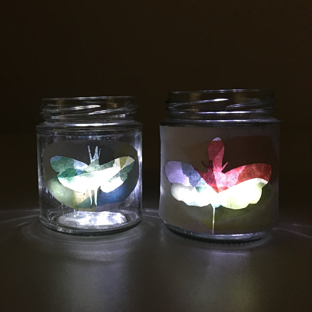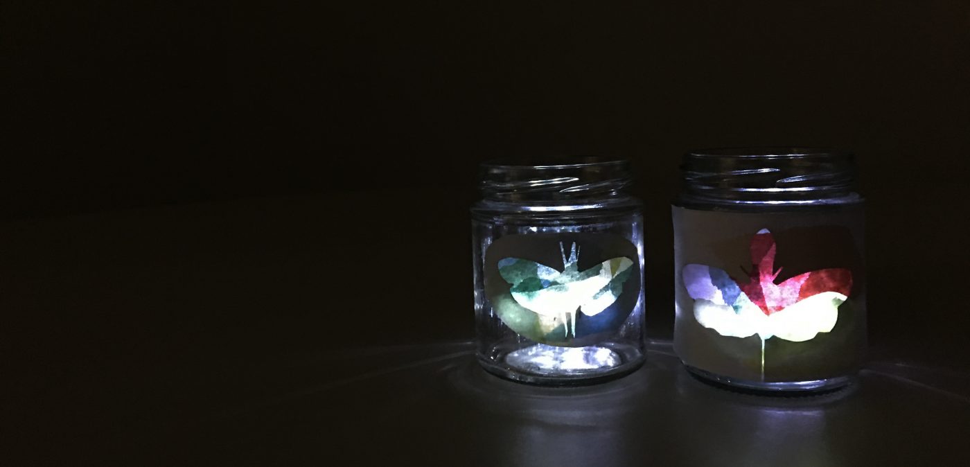 - Stick your lanternbug silhouette onto the side of your jar, being careful to stick it ‘messy-side’ down.