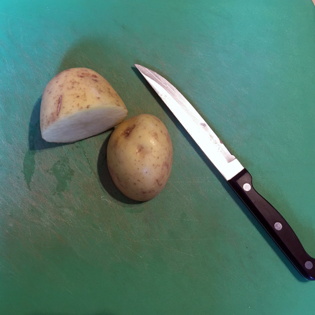 Top tip: dab the potato with a paper towel every now and then to keep the starchy liquid at bay.