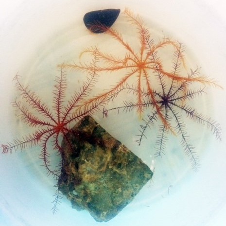During my Master’s Degree at the University of Milan I studied the development of feather stars. These delicate and colorful animals are part of a group of marine invertebrates called echinoderms, which also includes starfish and sea urchins. Echinoderms are unique in having their body arranged in five symmetrical rays around a central axis, with most organs repeated in each ray.