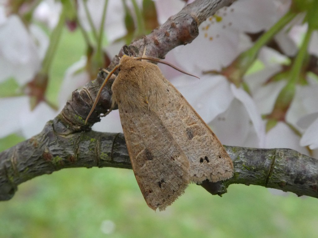 There was another first for the year moth in the trap over night, a Twin-spotted Quaker, plus a few other Common Quakers and a Hebrew Character again. Only a few bats were active over night, popping out just after sunset probably for a quick drink, before returning to their roosts to go back to sleep until the temperatures increase. We spotted our first Dark-edged Bee-fly on the path near the Autumn Garden yesterday. It looks a little like a bumblebee and will be found hovering over flowers with its long tongue, and is a good sign of the arrival of spring. Oxslips and Violets have also started flowering on the ecological mound.