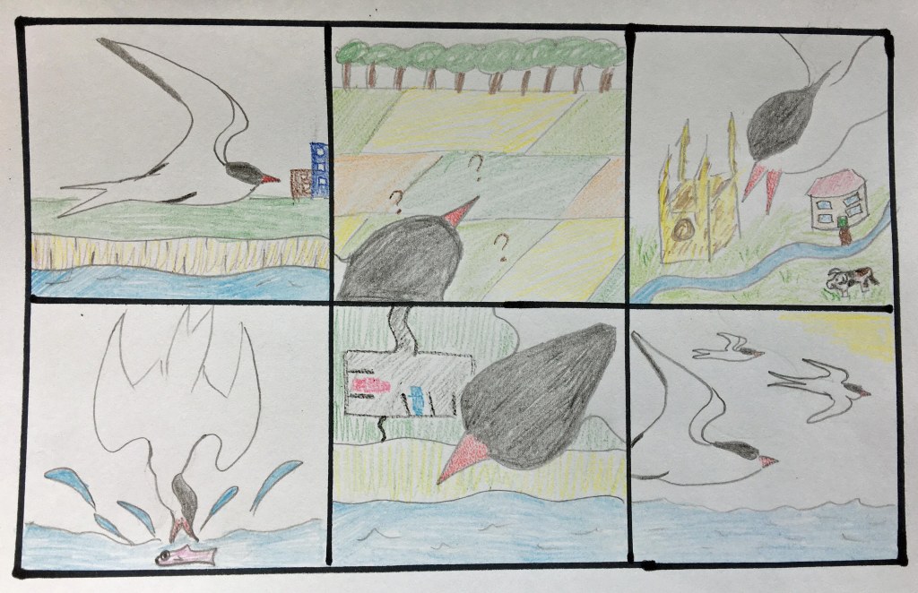 Comic strip featuring the common tern’s migration to Cambridge, UK