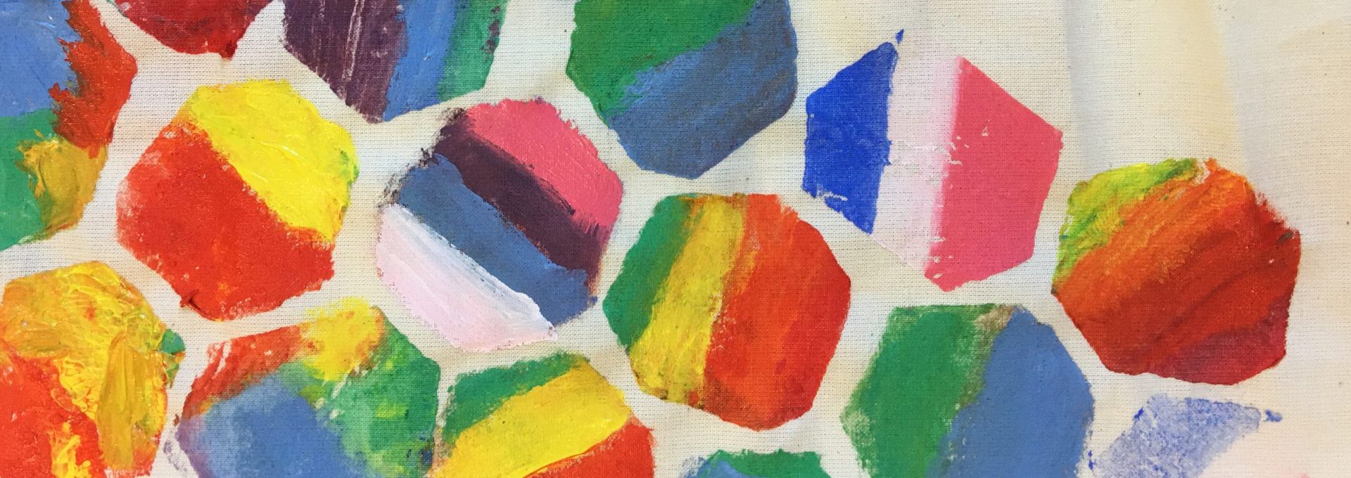- Repeat this process, using different colours. Fill up your fabric with these geometric shapes.